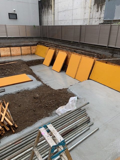 また敷地右手は1段低く捨てコンが打たれていました。現場監督に理由を聞くと。。。。