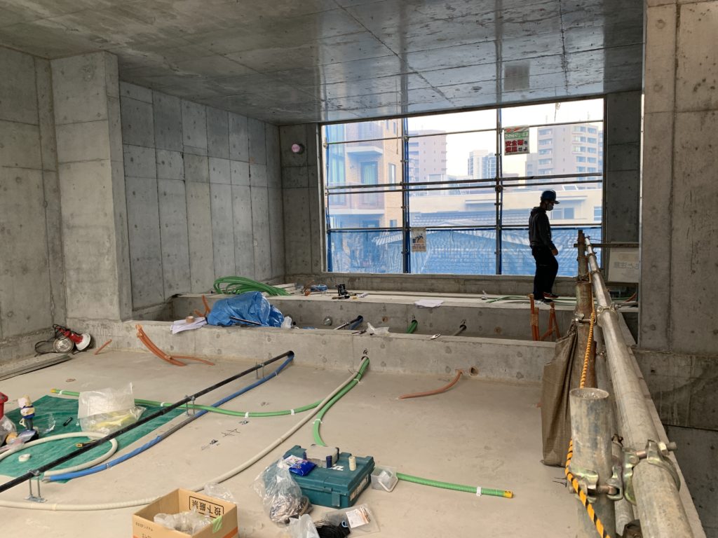 月1回の都内某所のデザイナーズ物件建築現場です。本日で8回目の訪問で建物の躯体は完成していました。