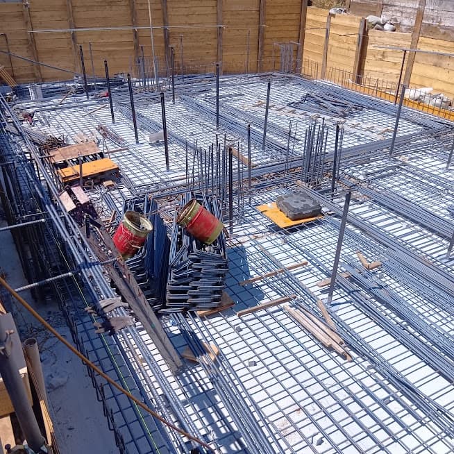 基礎配筋が進みます。スラブ(底盤)鉄筋はD13の150mmピッチです。